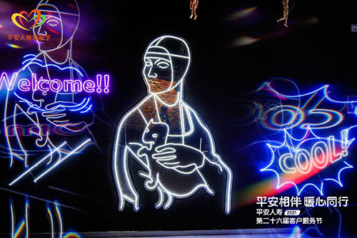 至美瞬间体验区是由原型白色幕布组成的半封闭空间。站在原地不动,工作人员会挥舞光束画出华丽的图案。在360°环绕的50台摄像机一起拍照,从而也体现出光影背后的匠心。